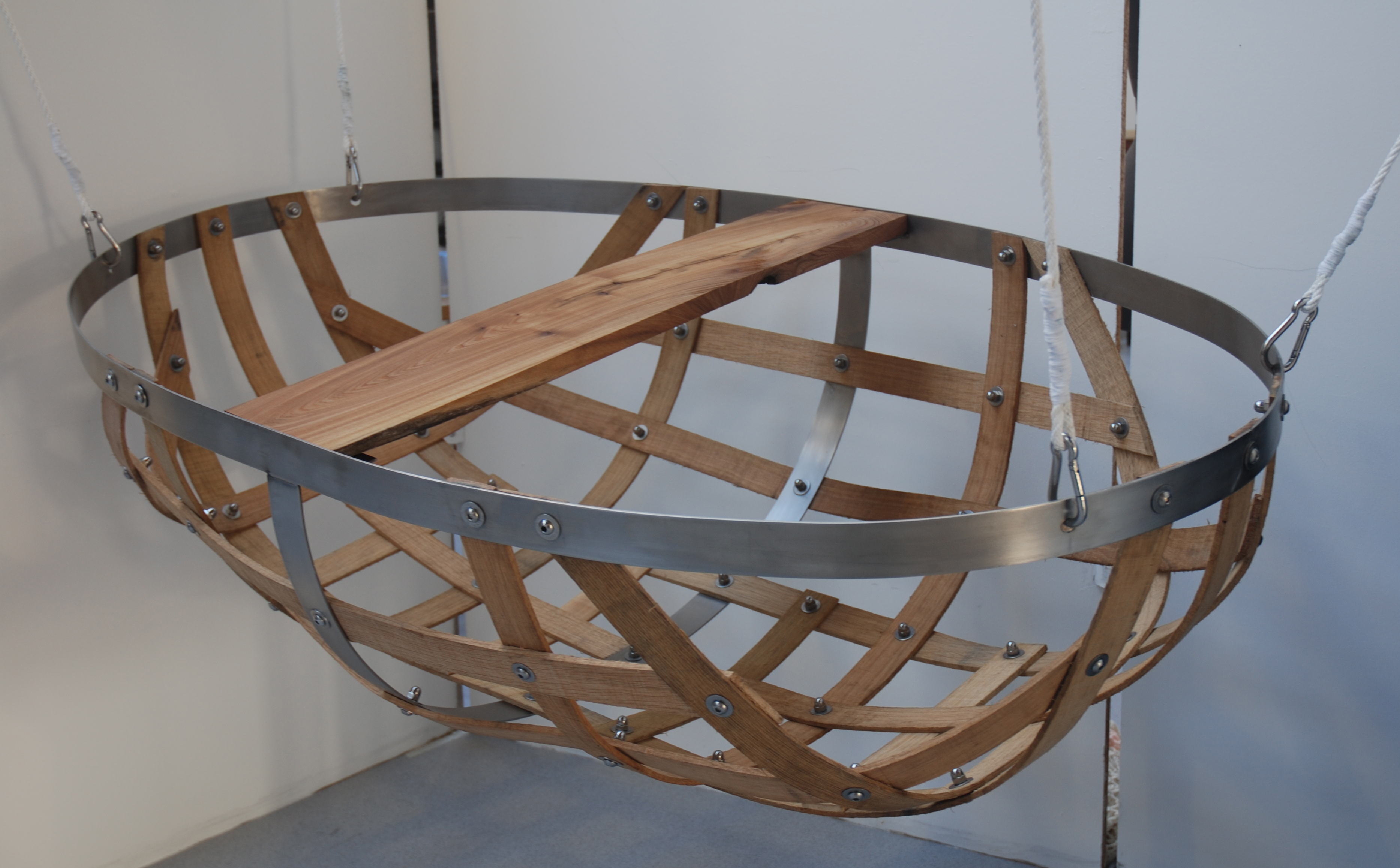 Coracle – Dartmoor Green Oak, Elm Seat and Stainless Steel – To be exhibited in Quay Arts 2023 Open Exhibition 22/07/2023 to 08/10/2023